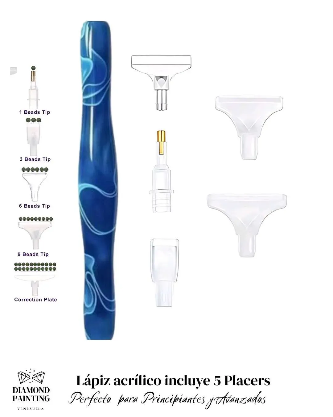 Lápiz para Diamond Painting Color Azúl Oscuro- Incluye 5 Placers de Plástico - Precio Euro BCV