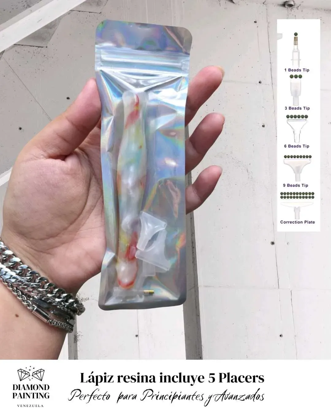 Lápiz para Diamond Painting de Resina Blanco Nacarado- Incluye 5 Placers de Plástico - Precio Euro BCV